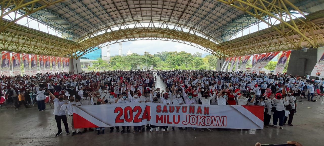 KAB. BANDUNG -JABAR | Relawan Presiden Joko Widodo (Jokowi) se-Bandung Raya menggelar silahturahmi sekaligus deklarasi komitmen di Dome Bale Rame Kabupaten Bandung, Jawa Barat, Sabtu (19/3/2022). Kegiatan itu setidaknya dihadiri kurang lebih 1.600 relawan.