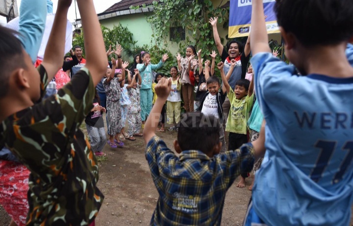 Kegiatan ini dilaksanakan sekitar pukul 16.00 hingga 17.30 WIB. Tak hanya bermain, anak-anak yang berusia sekitar tiga hingga 11 tahun ini berdoa bersama di area sekitar posko pengungsian.