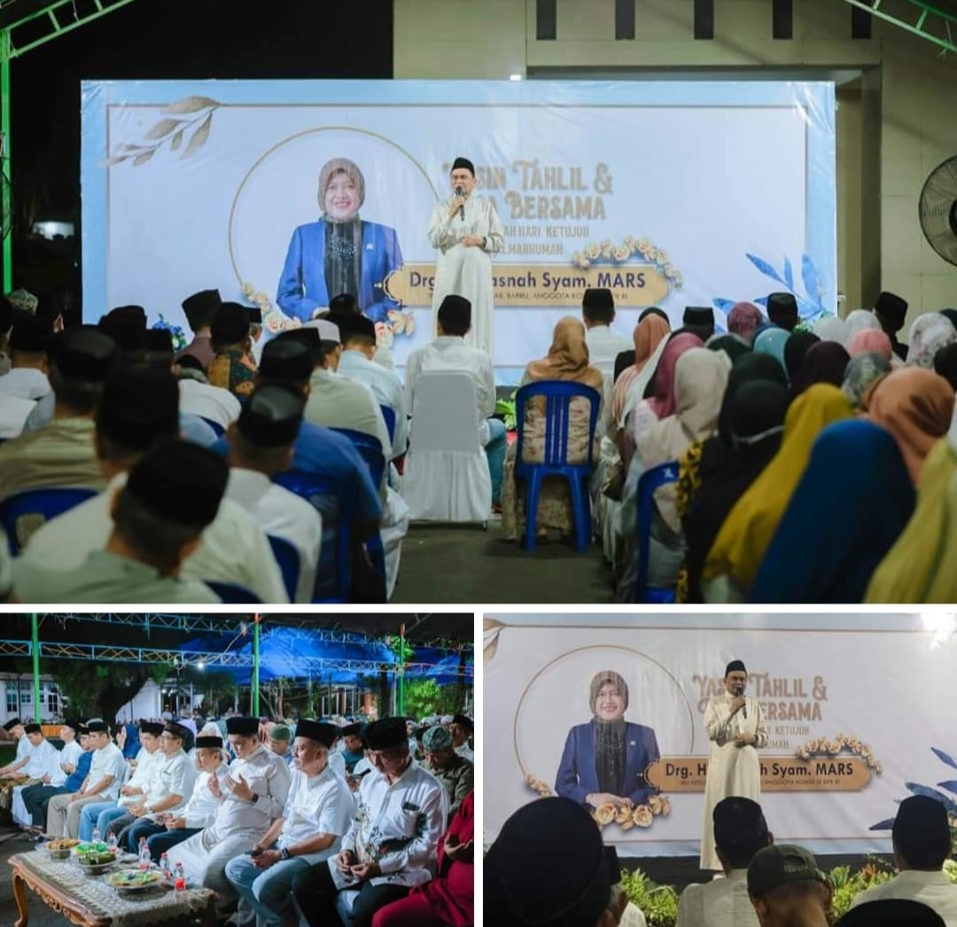 INFOINDONESIA.CLICK | BARRU – Memperingati malam Ketujuh atas wafatnya Almarhumah drg. Hj. Hasnah Syam MARS, dilaksanakan Yasinan, Tahlil, dan Doa Bersama yang dihadiri ribuan warga yang dilaksanakan di halaman Rumah Jabatan Bupati Barru, Rabu (27/12/2023).