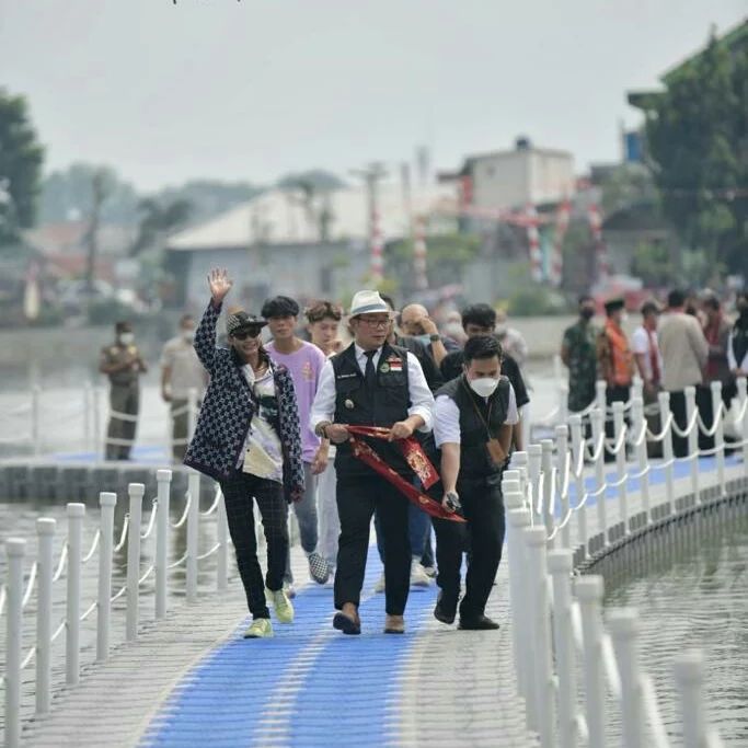 Dalam kesempatan tersebut, Kang Emil bersama Wali Kota Depok Mohammad Idris menjajal fasilitas floating deck ditemani pesohor Bonge Cs.