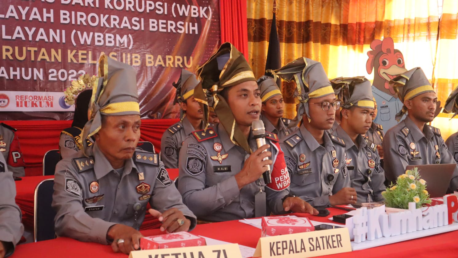 Barru – Rutan Kelas IIB Barru hadapi desk evaluasi penilaian mandiri oleh Tim Penilai Mandiri pelaksanaan zona integritas menuju Wilayah Bebas dari Korupsi (WBK) di lingkungan Kemenkumham RI Tahun 2023, Selasa 22 Agustus 2023.