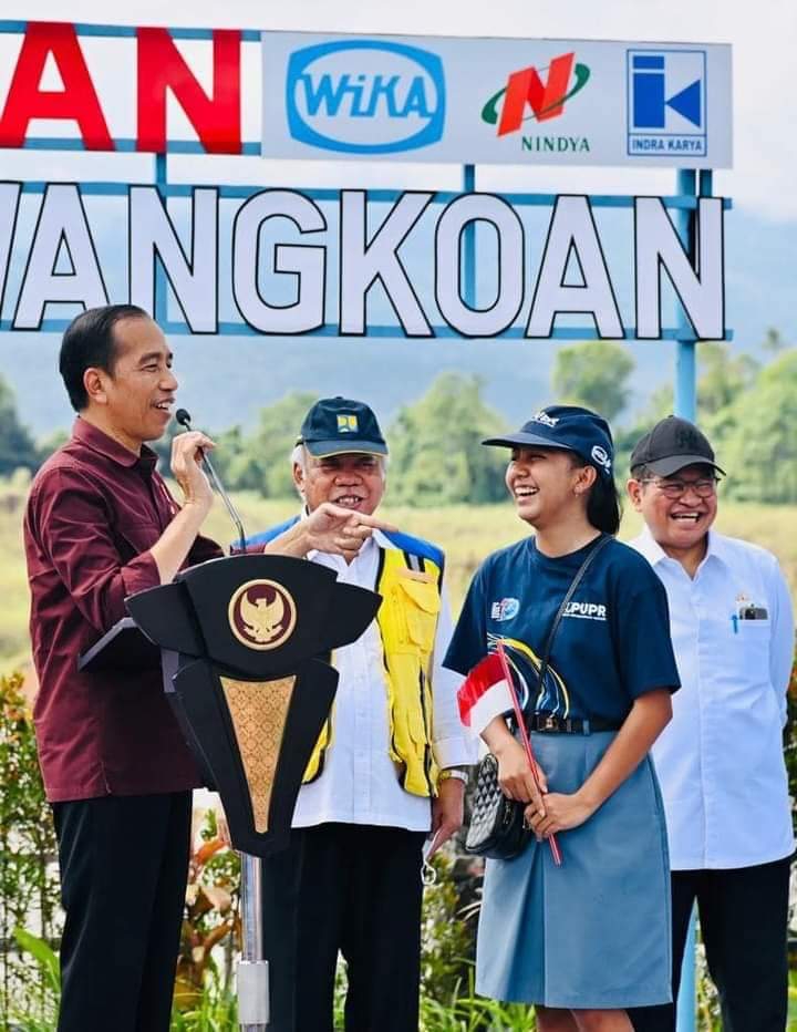MINAHASA UTARA | Saat meresmikan Bendungan Kuwil Kawangkoan, di Kabupaten Minahasa Utara, Provinsi Sulawesi Utara, pada Kamis, 19 Januari 2023, Presiden Joko Widodo memberikan kuis berupa sejumlah pertanyaan kepada siswa-siswi yang hadir di bendungan tersebut.