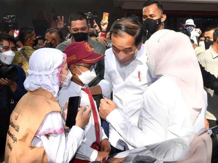 JAWA TIMUR | Ada yang menarik dalam kunjungan kerja Presiden Joko Widodo dan Ibu Iriana Joko Widodo ke Pasar Pucang Anom, Kota Surabaya, Provinsi Jawa Timur, pada Minggu, 21 Agustus 2022. Usai menyapa para pedagang sekaligus menyerahkan bantuan langsung kepada para penerima manfaat, Presiden dan Ibu Iriana dihampiri oleh dua wartawan cilik.
