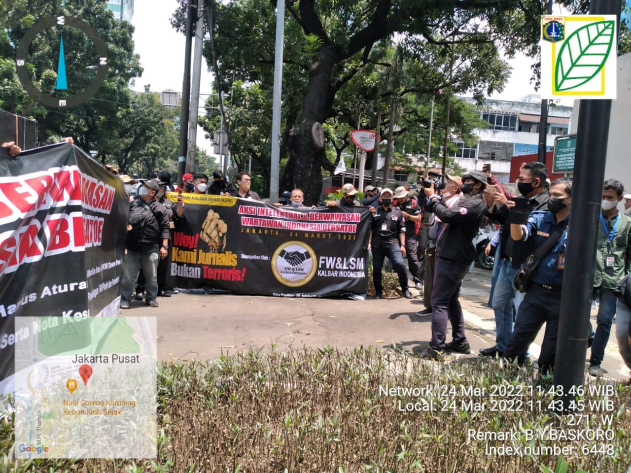 PONTIANAK ,KALBAR | Aksi demonstrasi damai “Wartawan Indonesia Bersatoe” yang dilakukan oleh sejumlah wartawan, perusahaan media dan organisasi media, di depan gedung Dewan Pers, Kamis (24/03/2022), mendapat pengawalan ketat oleh aparat kepolisian.