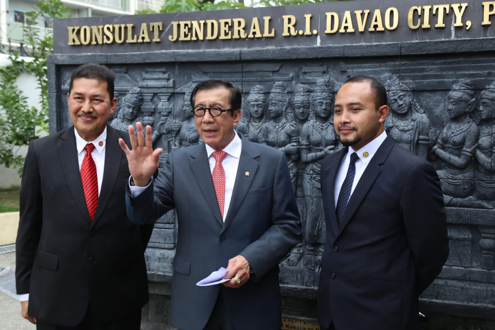 Dalam kegiatan penyerahan paspor, Yasonna didampingi Duta Besar RI untuk Filipina, Konjen RI untuk Davao City, dan Chief of State Counsel (mewakili Secretary of Justice).