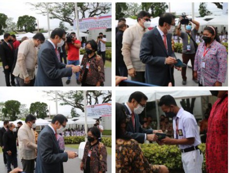 Davao | Menteri Hukum dan HAM Yasonna H. Laoly menyerahkan paspor beserta izin tinggal special non immigrant visa kepada perwakilan warga negara Indonesia yang berasal dari warga negara keturunan / Persons of Indonesian Descent (PIDs). Acara penyerahan paspor dilakukan secara simbolis di Lapangan Upacara KJRI Davao, Filipina.