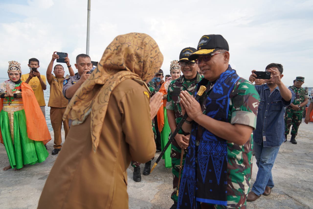 Sesampainya di Desa Pulo Panjang Danrem 064/MY dan rombongan di sambut oleh Kepala Desa Pulo Panjang Ibu Ratu Bulkis beserta masyarakat Pulo Panjang