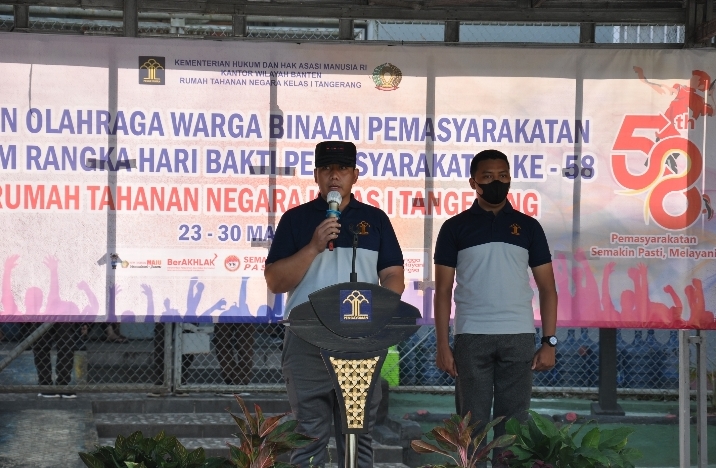TANGERANG | Rumah Tahanan Negara Kelas I Tangerang melaksanakan Upacara Pembukaan Pekan Olah Raga Dan Seni (PORSENI) dalam rangka menyambut Hari Bakti Pemasyarakatan yang ke – 58. Di hadiri oleh Kepala Rutan Kelas I Tangerang Akhmad Zaenal Fikri beserta jajarannya dan Warga Binaan Pemasyarakatan (WBP), kegiatan ini dilaksanakan di Lapangan Rutan Kelas I Tangerang, Rabu (23/03/2022).