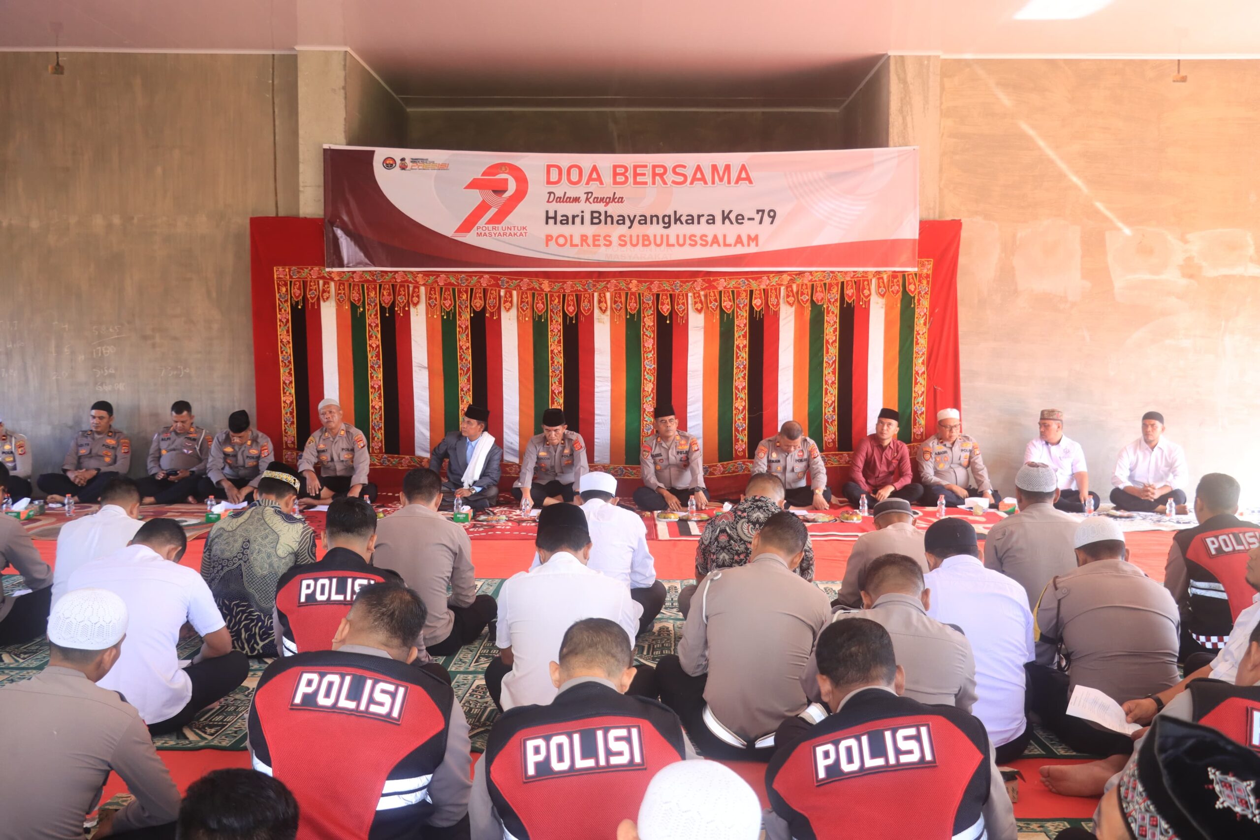 ACEH – Dalam rangka menyambut Hari Bhayangkara ke-79, Kepolisian Resor Subulussalam menggelar Dzikir dan Doa bersama di Musholla Al-Nisamy Mapolres Subulussalam, Jumat, 20 Juni 2025.