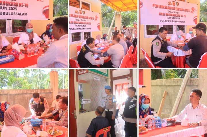 ACEH – Dalam rangka menyambut hari Bhayangkara ke-79, Kepolisian Resort Subulussalam melalui Seksi Kedokteran dan Kesehatan (Sidokkes) menggelar pemeriksaan kesehatan gratis bagi masyarakat, bertempat di Poliklinik Polres Subulussalam, Rabu, 18 Juni 2025.