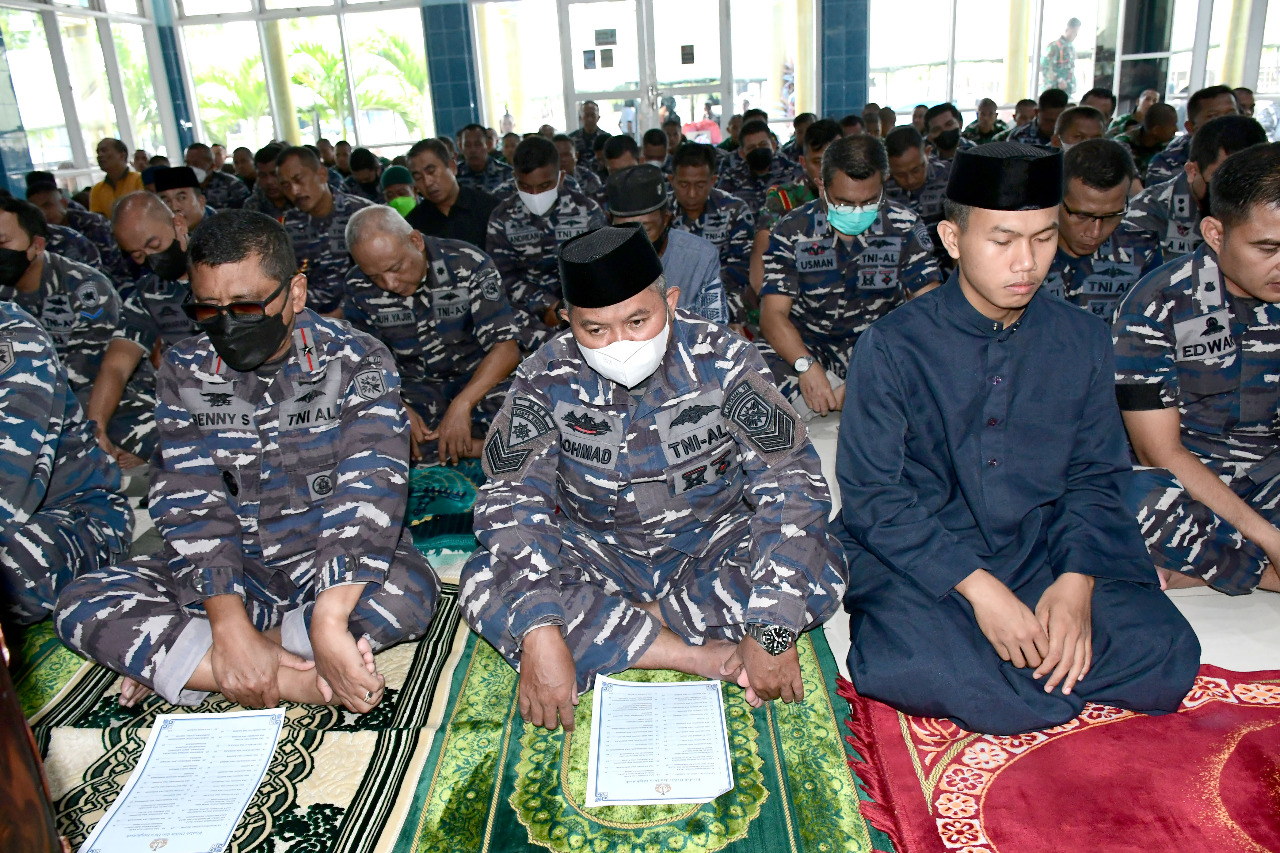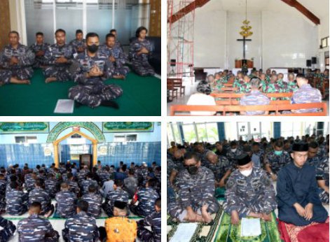 MAKASSAR | Dalam rangka menyambut hari jadi ke-77 Tentara Nasional Indonesia Angkatan Laut (TNI AL) tahun 2022, seluruh Prajurit dan Pegawai Negeri Sipil (PNS) Pangkalan Utama TNI AL VI (Lantamal VI) Makassar laksanakan doa bersama yang dilaksanakan di tiga tempat Ibadah Lantamal VI, Jum’at (02/09/2022).