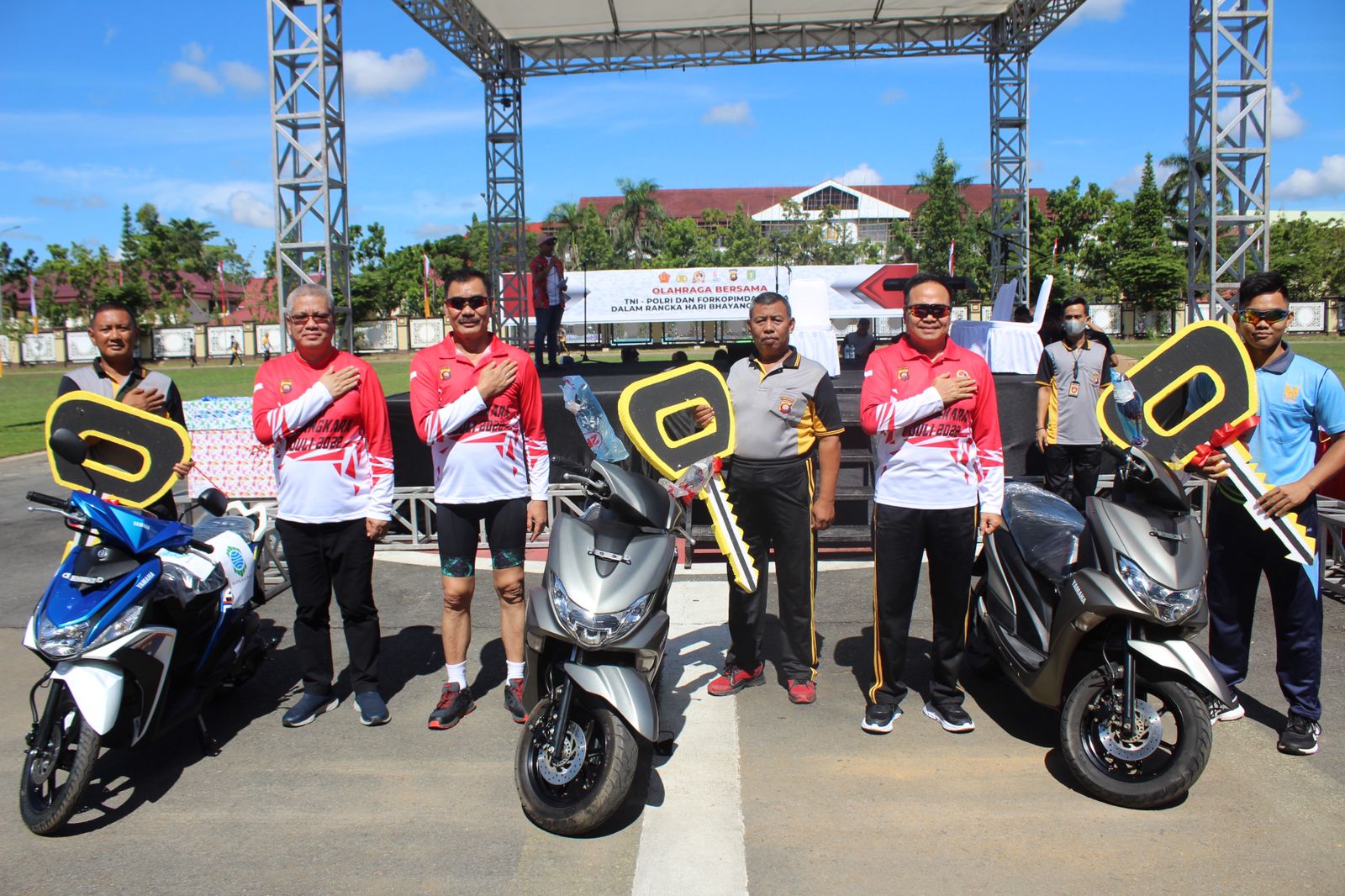 Dalam kesempatan ini, Mayjen TNI Sulaiman Agusto bersama Sekda Kalbar dr. Harisson dan Kapolda Kalbar Irjen Pol Suryanbodo Asmara berkesempatan menyerahkan lucky draw berupa sepeda motor kepada peserta Gowes yang beruntung.