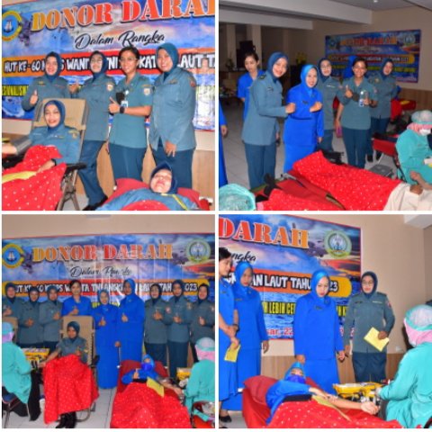 TNI AL, LANTAMAL VI | Dalam rangka menyambut Hari Ulang Tahun (HUT) ke-60 Korps Wanita Angkatan Laut (Kowal), yang diperingati pada 5 Januari 2023 mendatang, Kowal Lantamal VI Makassar bekerja sama dengan Unit Tranfusi Darah (UTD) Palang Merah Indonesia (PMI) melaksanakan kegiatan Donor Darah yang dilaksanakan di ruang PP. Jaladri Mako Lantamal VI, Kamis (22/12/2022).