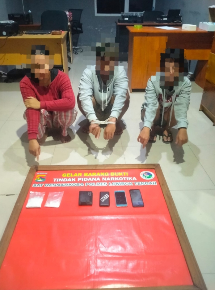 Kapolres Lombok Tengah AKBP Iwan Hidayat, SIK melalui Kasat Narkoba IPTU Derpin Hutabarat, SH, M.Hum, mengatakan bahwa, penangkapan terhadap tiga orang terduga pelaku berdasarkan informasi dari masyarakat bahwa di TKP tersebut sering terjadi transaksi Narkotika jenis Sabu.