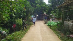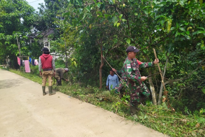 “Kami bersama-sama warga membersihkan lingkungan mulai dari jalan utama, rumput liar, ranting pohon dan juga halaman depan rumah warga, ucap Danpos.