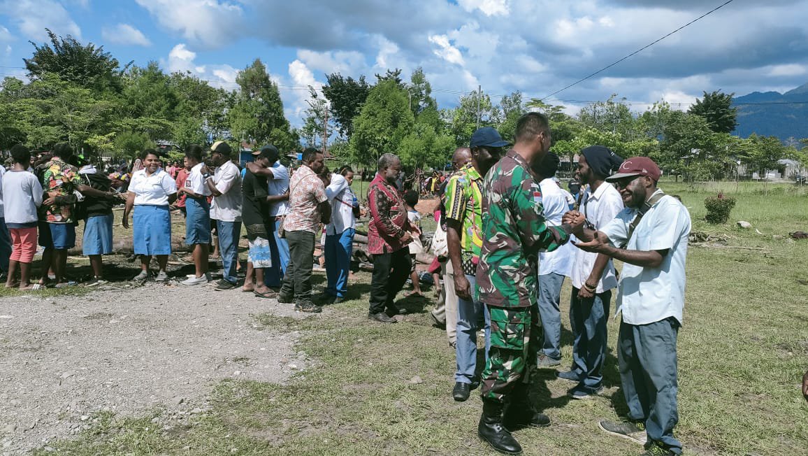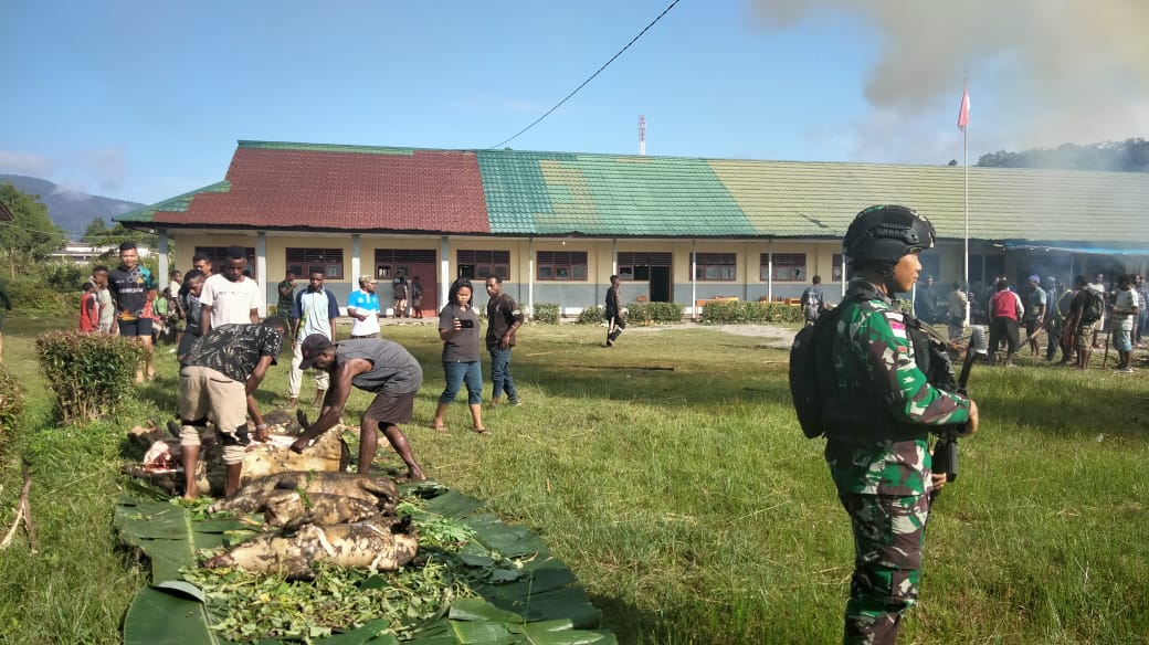 Turut hadir dalam acara bakar batu ini, Pater Letda Inf Indar Mawan Sinaga bersama Pabintal Satgas Letda Inf Edwin Harianja, Perwakilan Posramil Elelim Serka Matuan, Kepala Sekolah SMAN 1 Elelim Bpk Mes Kepno beserta seluruh guru dan tentunya para mantan siswa yang berjumlah 153 org.