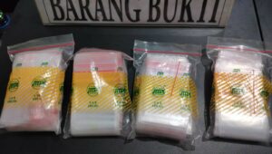 Barang bukti yang diamankan dari tersangka AS (26) adalah 2 ( dua ) paket plastik bening yang berisi Kristal warna putih diduga narkotika jenis sabu-sabu brutto 0,69 Gram, 1 (satu) paket platik bening yang bersikan Kristal warna putih diduga narkotika jenis sabu-sabu brutto 8,79 Gram, 4 (empat) bungkus plastik klip kecil,dan 1(satu) buah hand phone XIAOMI,