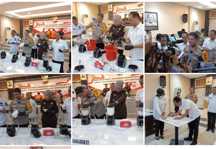 Setelah melalui tahap pengujian,barang haram tersebut kemudian di musnahkan menggunakan Emapt Mesin Blender,air mineral, dan cairan pembersih lantai,”jelasnya kembali