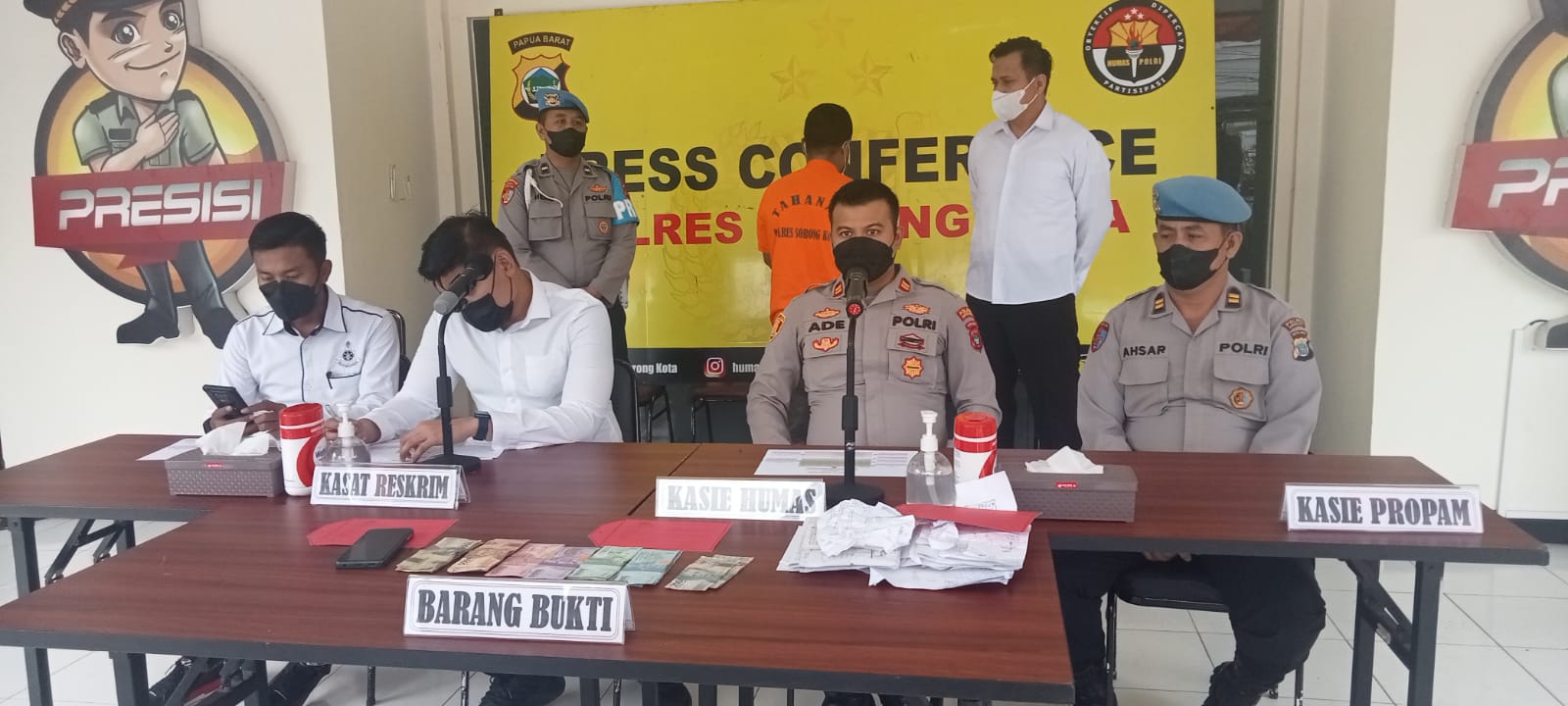 SORONG PAPUA BARAT | Sindikat judi online yang yang beroperasi di wilayah hukum Papua barat, khususnya Kota sorong berhasil dibongkar dan pelakunya langsung diamankan oleh Satreskrim saat pres rilis di Mako polres Sorong kota Papua barat.senin(22/08/2022)