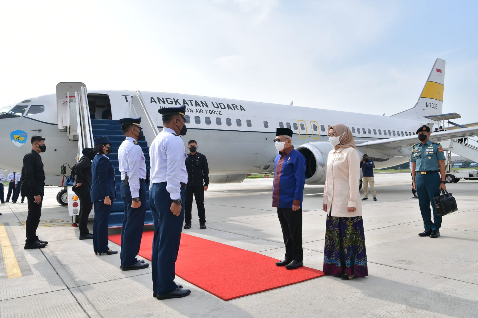 Wapres yang didampingi Ibu Wury Ma’ruf Amin beserta rombongan terbatas, lepas landas dari Pangkalan Udara TNI AU Halim Perdanakusuma akan transit sejenak di Bandara Internasional Pattimura Ambon, Provinsi Maluku untuk pengisian bahan bakar sebelum melanjutkan penerbangan menuju Bandar Udara Internasional Sentani Jayapura, Provinsi Papua, Senin (28/11/2022).
