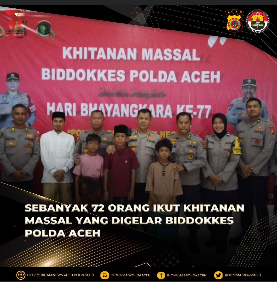 Khitanan massal yang digelar Biddokkes Polda Aceh tersebut dalam rangka Hari Bhayangkara ke 77 Tahun 2023.