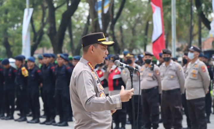 Kapolres Metro Tangerang Kota Kombes Pol Zain Dwi Nugroho memimpin apel kesiapan pengamanan penutupan Porprov 2022, di halaman Stadion Benteng Rebond. Selasa, (29/11) siang.