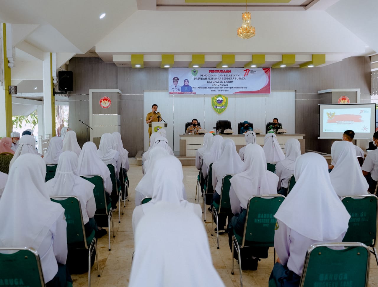 BARRU | Bupati Barru Ir. H. Suardi Saleh, M.Si, membuka secara langsung Pendidikan dan Pelatihan Pasukan Pengibar Bendera Pusaka Kabupaten Barru berlangsung di Baruga Singkerru Ada’e Senin, 1 Agustus 2022 yang diikuti siswa/siswi tingkat SMA sederajat.