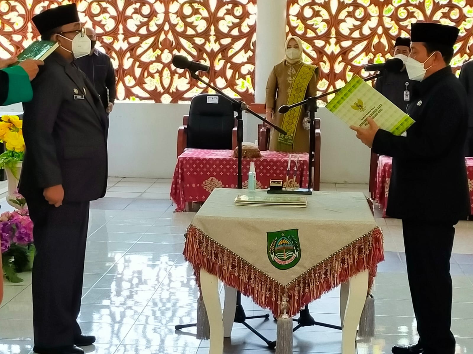 ROKAN HULU | Bertepatan dengan Bulan yang penuh Berkah pada Bulan Suci Ramadhan 1443 H, Bupati Kabupaten Rokan Hulu H.Sukiman secara Resmi Lantik dan Sekaligus mengambil Sumpah Jabatan Pejabat Tinggi Pratama Sekretaris Daerah Kabupaten Rokan Hulu, Selasa (19/4/2022) bertempat di Pendopo Rumah Dinas Bupati Kabupaten Rokan Hulu.