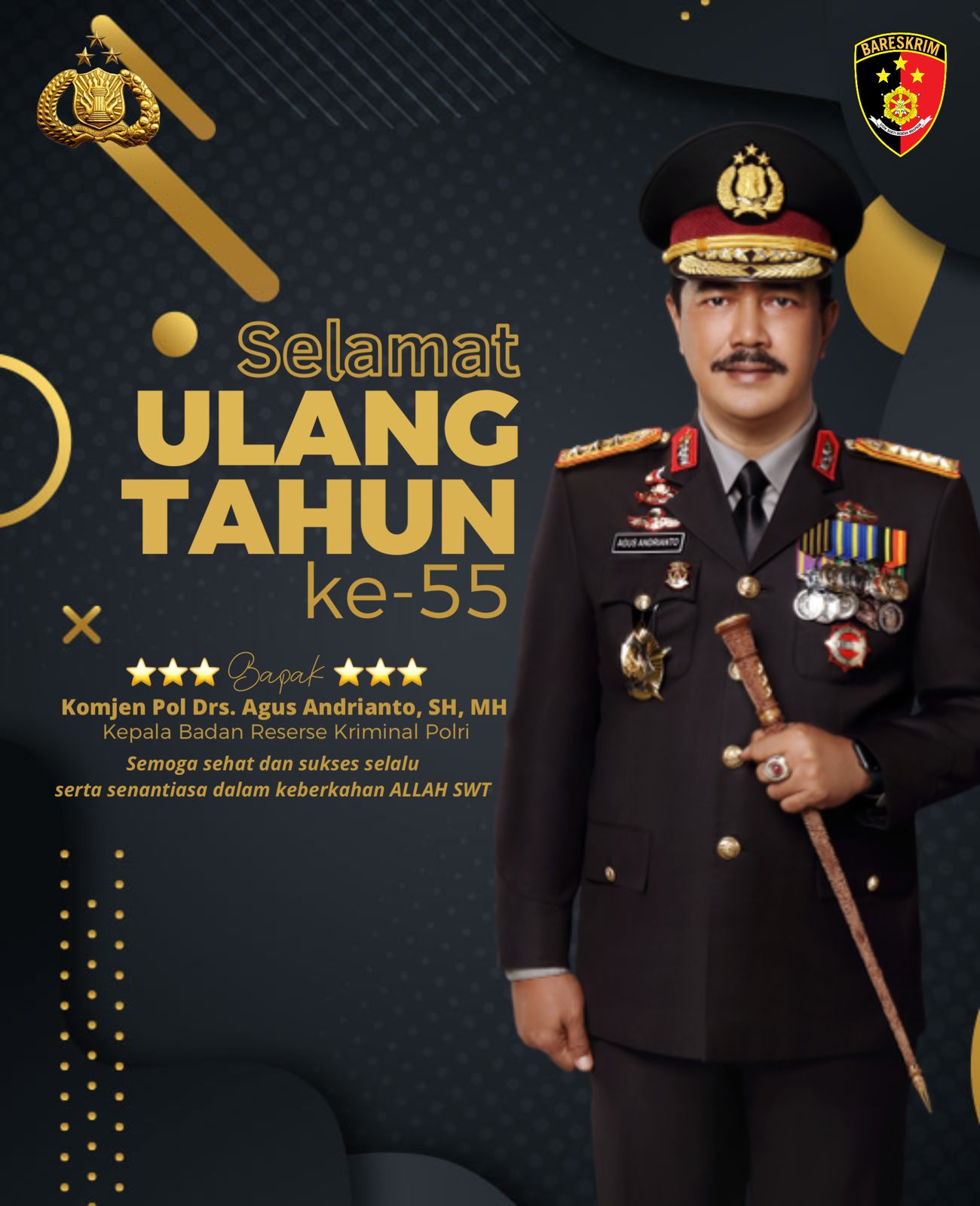 Komjen Pol Agus Andrianto ,telah dipercaya menduduki jabatan Kepala Badan Reserse Kriminal (Kabareskrim) Polri.
