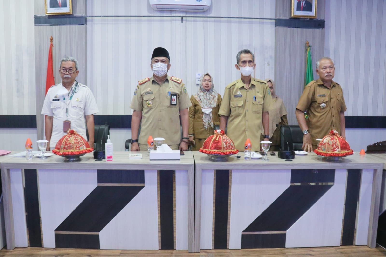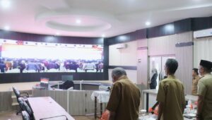 BARRU | Sekretaris Daerah Barru, DR. Ir. Abustan AB M.Si bersama jajaran Asisten menyimak dengan tuntas saat Presiden Jokowi memberikan pengarahan dan evaluasi aksi afirmasi bangga buatan Indonesia via Virtual di Barru Smart Information Center (Basic), Selasa (24/5/2022).