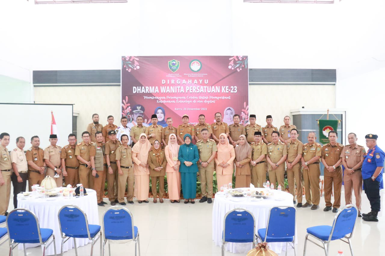 BARRU | Dharma Wanita Persatuan merayakan Hari Ulang Tahun (HUT) ke-23, Senin 26,12-2022, di Aula Bappelitbangda Lantai 2 Kabupaten Barru.