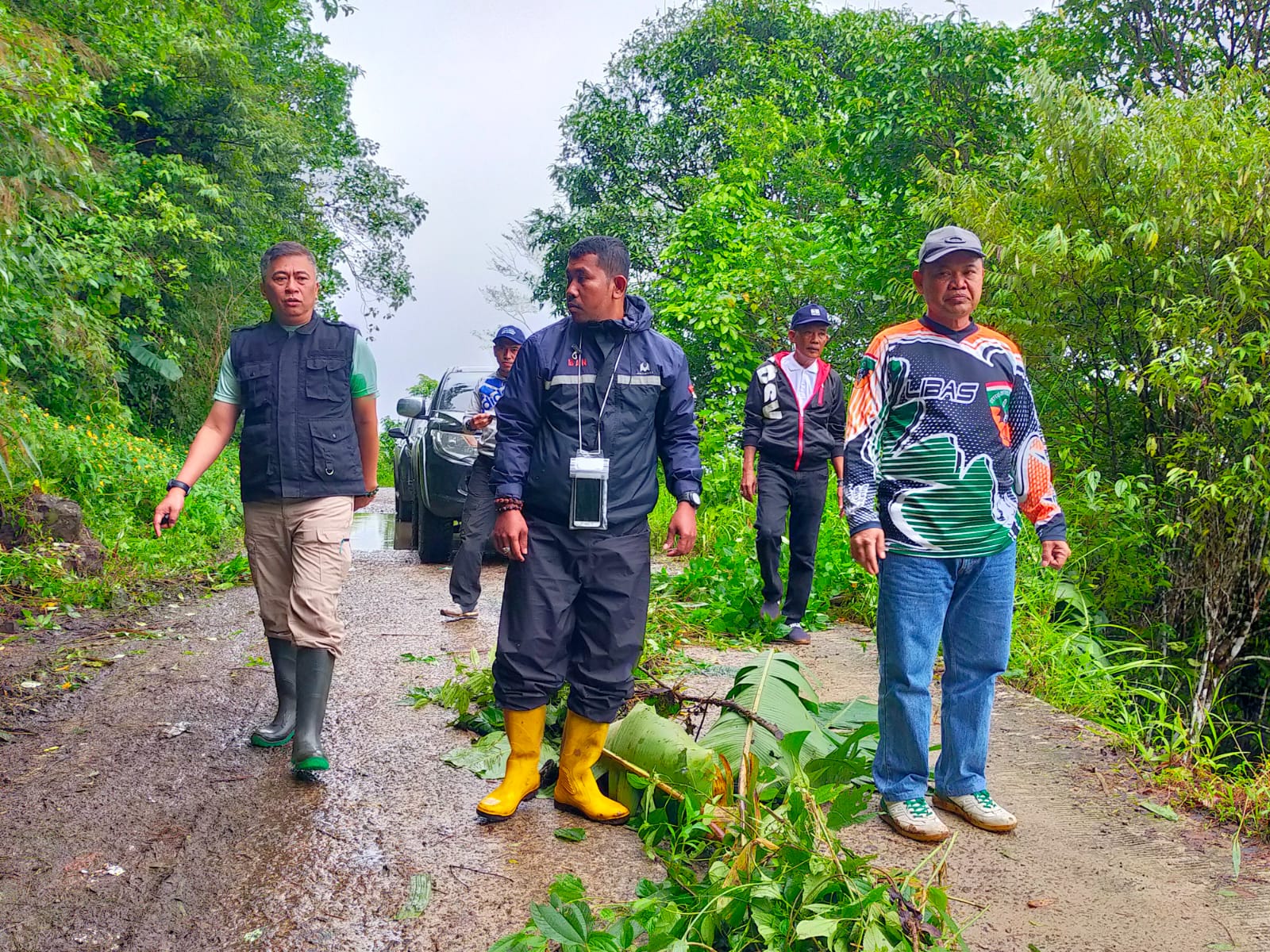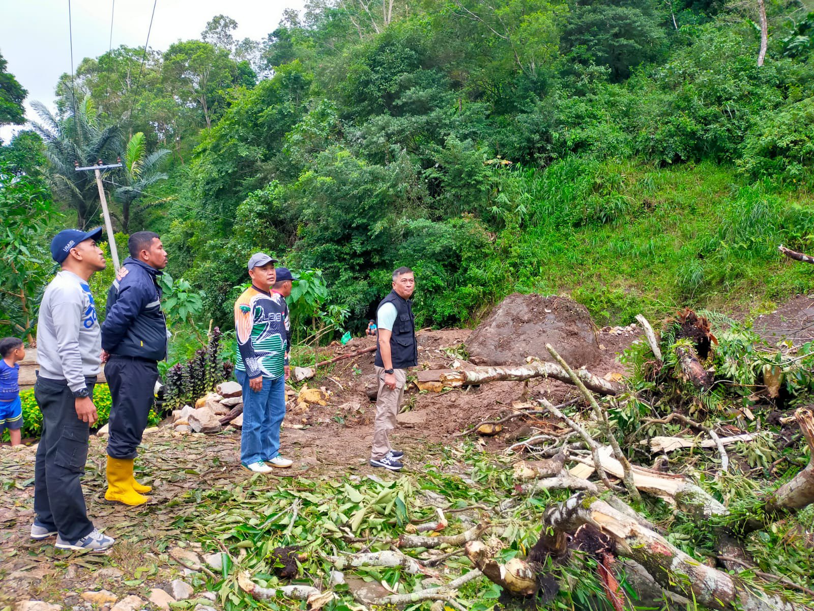 Sekretaris Daerah Abustan langsung menyambangi lokasi terjadinya longsor yang didampingi oleh Kalaksa BPBD Barru Umar Sinampe, Kadis PU, TRC. BPBD Barru dan Sekertaris Dinas PU.