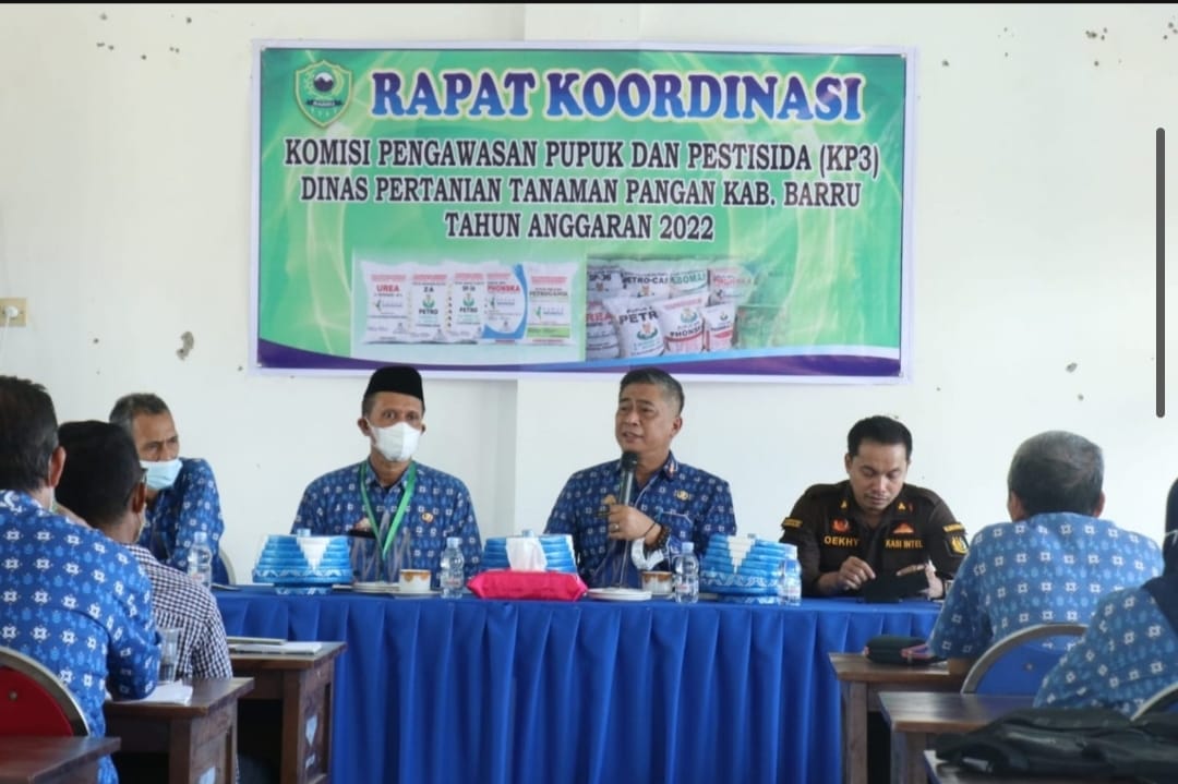 BARRU | Pemerintah Kabupaten Barru melalui Dinas Pertanian dan Ketahanan Pangan melaksanakan Rapat Koordinasi Komisi Pengawasan Pupuk dan Pestisida (KP.3) yang diselenggarakan di Aula Dinas Pertanian jalan HM.Saleh Lawa Barru, Kamis (12/5/2022).