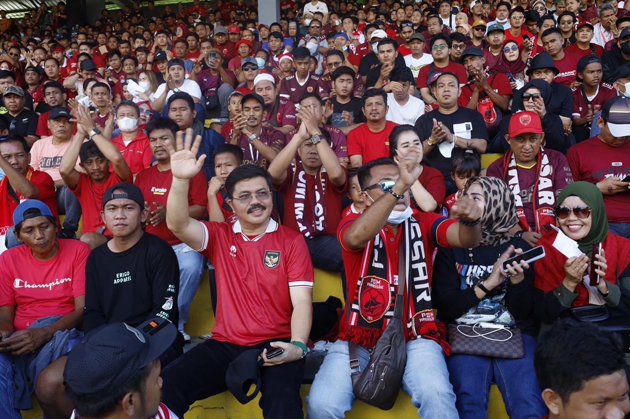 Di tengah suasana pertandingan yang penuh riuh dan sorak sorai penonton, Muhammad Aras, Aksa Mahmud dan Taufan Pawe terlihat menikmati adrenalin pertandingan. Kedua kesebelasan yang sama-sama memiliki sejarah panjang persebakbolaan di Nusantara ini menjadi daya Tarik tersendiri bagi para pecinta sepak bola.