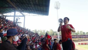 BARRU | Selepas menunaikan ibadah Shalat Jum’at di Masjid Agung Parepare dan makan siang bersama di kediaman Walikota Parepare, Anggota DPR RI Fraksi PPP, Dr. H. Muhammad Aras bersama Walikota Parepare, Taufan Pawe segera menuju Lapangan Sepak Bola Stadion BJ. Habibie, SGM (Stadion Gelora Mandiri), Jl. Stadion Gelora Mandiri, Lompoe, Kecamatan Bacukiki, Kota Parepare, Sulawesi Selatan, untuk menyaksikan pertandingan sepak bola antara PSM Makassar dengan Persija Jakarta di ajang BRI Liga I 2022/2023. (Jum’at, 05/08/2022).