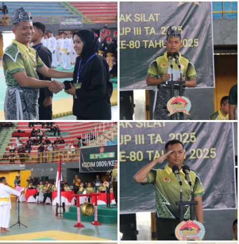 LKediri – Komando Distrik Militer (Kodim) 0809/Kediri menyelenggarakan Kejuaraan Pencak Silat Piala Dandim Cup III. Event yang digelar di GOR Joyoboyo, Kelurahan Bandar Kidul, Kecamatan Mojoroto, Kota Kediri pada Jumat (12/9) ini merupakan bagian dari rangkaian peringatan Hari Ulang Tahun (HUT) Tentara Nasional Indonesia (TNI) Ke-80 tahun 2025.