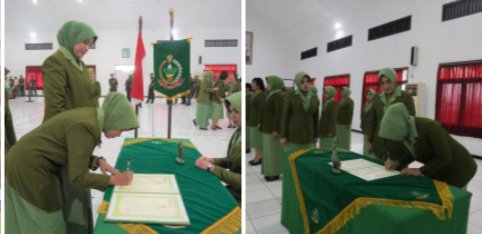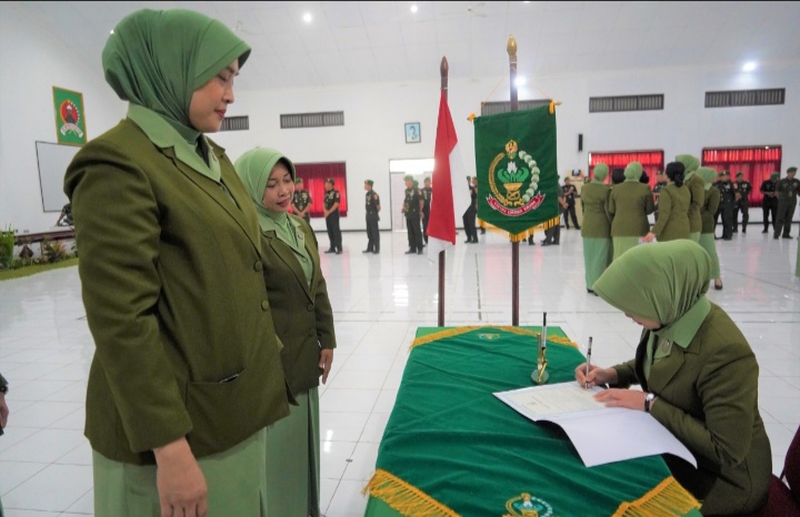 BANYUMAS | Ketua Persit Kartika Chandra Kirana Koorcab Rem 071 PD IV/Diponegoro Ny. Natania Yudha Airlangga memimpin Serah Terima Jabatan Ketua Persit Kartika Chandra Kirana Cabang XXI Dim 0711/Pemalang dan Pengurus Persit Kartika Chandra Kirana Koorcab Rem 071 PD IV/Diponegoro, Selasa (27/12/2022) di Gedung Pertemuan A.Yani Makorem 071/Wijayakusuma, Sokaraja, Banyumas.