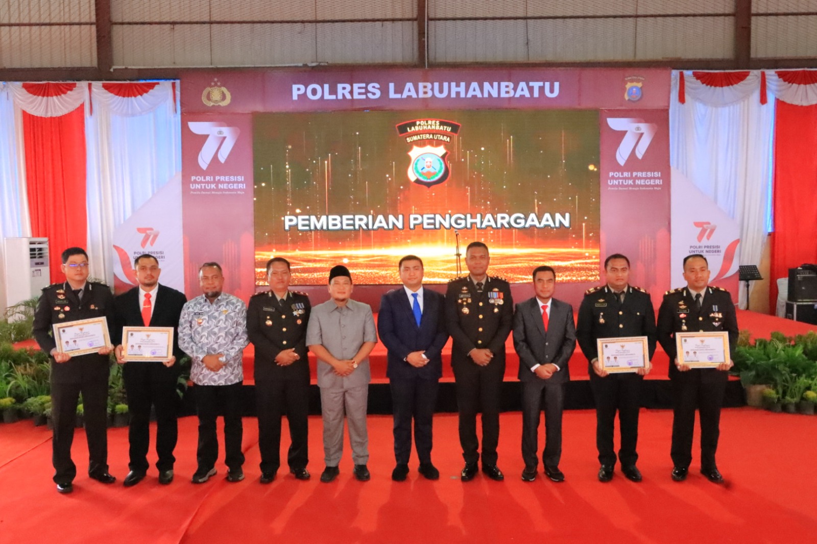 infoindonesiainews.com | POLRES LABUHANBATU – Resepsi Hari Bhayangkara ke 77 Tahun 2023 di Polres Labuhanbatu diwarnai dengan banyaknya pemberian Reward baik yang diberikan oleh Forkopimda Labuhanbatu dan Labura (Labuhanbatu Utara)maupun Kapolres Labuhanbatu serta melaunching aplikasi SIAP (Sistem Integrasi Aplikasi Pelayanan).