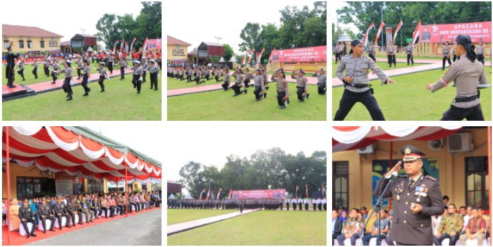 Diawali dengan upacara di halaman Mapolres, resepsi tahunan ini dilanjutkan dengan pemotongan nasi tumpeng oleh Kapolres Labuhanbatu dan pejabat utama sebagai bentuk rasa syukur dan pemberian kue tart dari Pemkab Labura serta ucapan selamat di kegiatan tersebut.