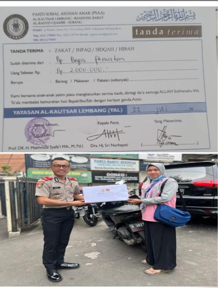 Dalam kegiatan tersebut, Serdik Sespimmen Polri Direg ke 62, Serdik bagus panuntun memberikan bantuan donasi untuk yayasan Al Kautsar Lembang