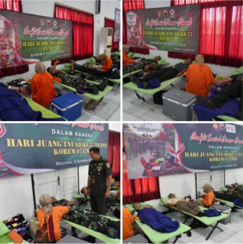 Sinergi peduli masyarakat melalui donor darah Hari Juang TNI AD Ke-77 Tahun 2022 ini, guna untuk membantu kesulitan masyarakat khususnya ketersediaan darah atau stok darah di wilayah Banyumas dan sekitarnya.