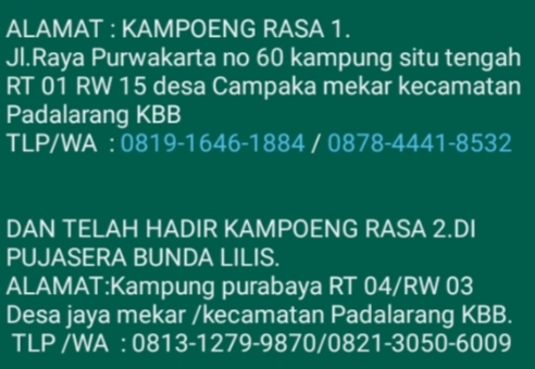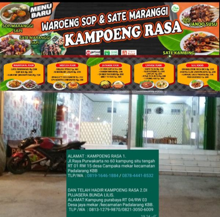 Pemilik Rumah Makan khas Sunda Dadang Hidayat menyampaikan juga, bahwa “Kampoeng Rasa Waroeng Sop dan Sate Maranggi “ nya tersebut membuka cabang dan menerima pesanan untuk berbagai Acara baik Pernikahan, Khitanan, ataupun Catering dll,”pungkasnya.