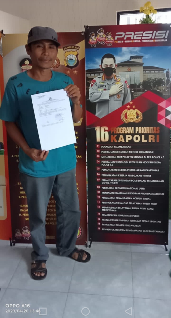 Nomor : STTLP/B/253/IV/2023/SPKT/Polres Bulukumba/Polda Sul-sel Kamis 20 April 2023 Pukul 12:36 Wita.