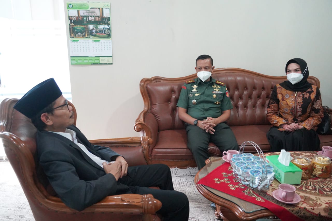 PURWOKERTO | Perkokoh Sinergitas diwilayah khususnya kerukunan umat beragama, Danrem 071/Wijayakusuma Kolonel Inf Yudha Airlangga, S.E., dengan didampingi Ketua Persit Kartika Chandra Kirana Koorcab Rem 071 PD IV/Diponegoro Ny. Natania Yudha Airlangga, Kasrem 071/Wijayakusuma Letkol Inf Candra, S.E., M.I.Pol., dan Wakil Ketua Persit Kartika Chandra Kirana Koorcab Rem 071 PD IV/Diponegoro Ny. Wiwin Candra, lakukan kunjungan silaturahmi ke Ketua FKUB Banyumas yang juga Rektor Universitas Islam Negeri Prof. Dr. Safrudin Zuhri (UIN Saizu) Purwokerto Dr. H. Mohammad Roqib, M.Ag., Rabu (20/7/2022) di Universitas Islam Negeri Prof. Dr. Safrudin Zuhri (UIN Saizu) Purwokerto, Banyumas.