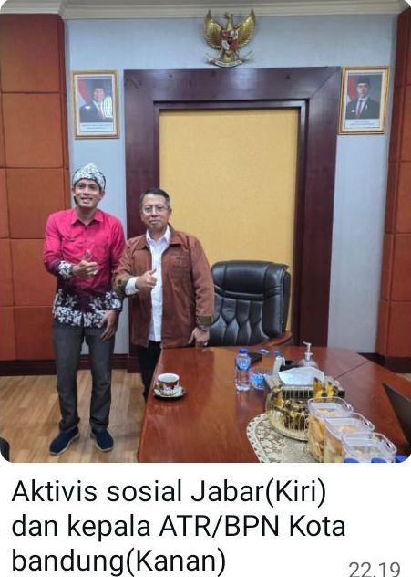 Aktivis Kemanusiaan Jabar yang akrab di sapa Kang Surya,dalam pertemuannya dengan kepala kantor pertanahan Kota Bandung H. Yayat Ahadiat Awaludin S.SiT.,M.H di nilai sangat penting, karena untuk memberikan informasi publik, agar tidak simpang siur. Kamis,(04 Desember 2025).