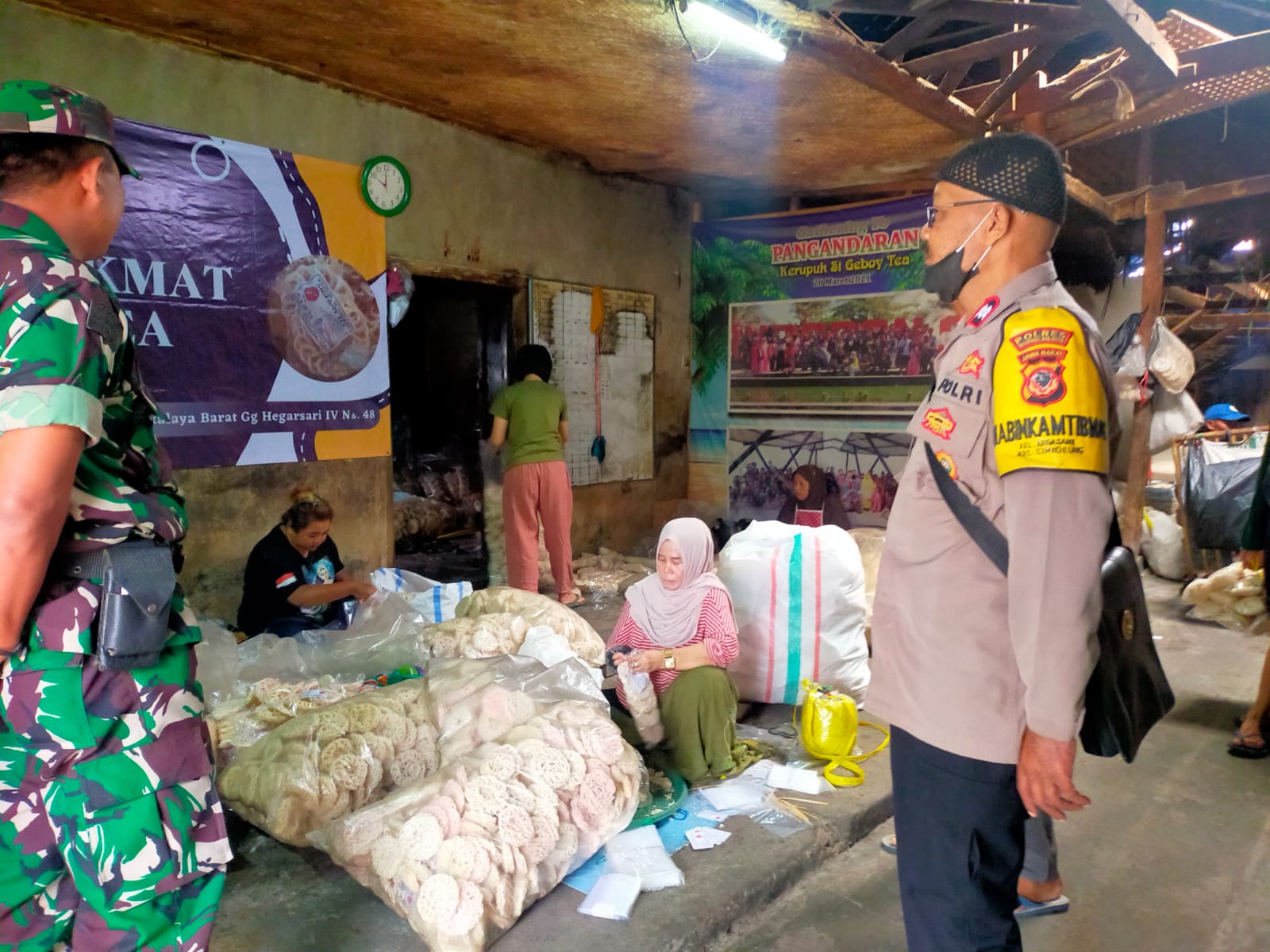 INFOINDONESIA – TASKOT| Bhabinkamtibmas Kel. Argasari Kec. Cihideung dan Babinsa Serda. Supriatna G, Dedi kasitrantib bersinergi bersama warga melaksanakan kegiatan Sambang dan Silatutahmi serta kontrol home industri kerupuk geboy dan toko Mannaku di lingkungan Kel. Argasari Kecamatan Cihideung Kota Tasikmalaya, Sabtu (25/03/23)