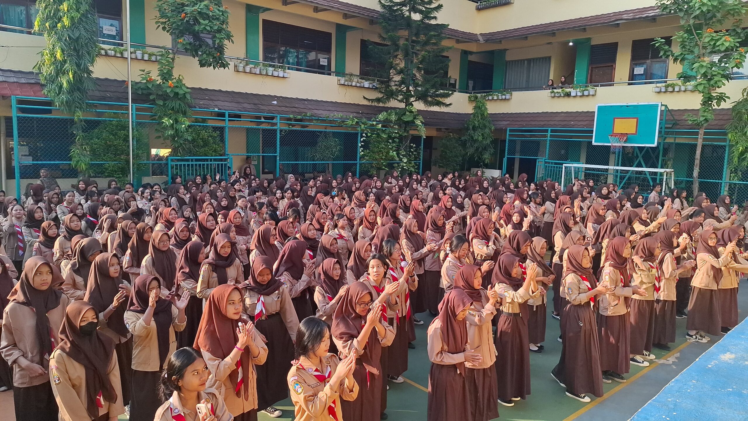 JAKARTA — Dalam rangka memperingati Hari Anak Nasional, SMK PGRI 15 Jakarta menggelar kegiatan senam massal yang melibatkan seluruh siswa, guru, dan staf sekolah pada Rabu pagi (23/07/2025). Kegiatan yang berlangsung di lapangan utama sekolah tersebut diikuti dengan penuh semangat oleh ratusan siswa yang mengenakan seragam Pramuka.
