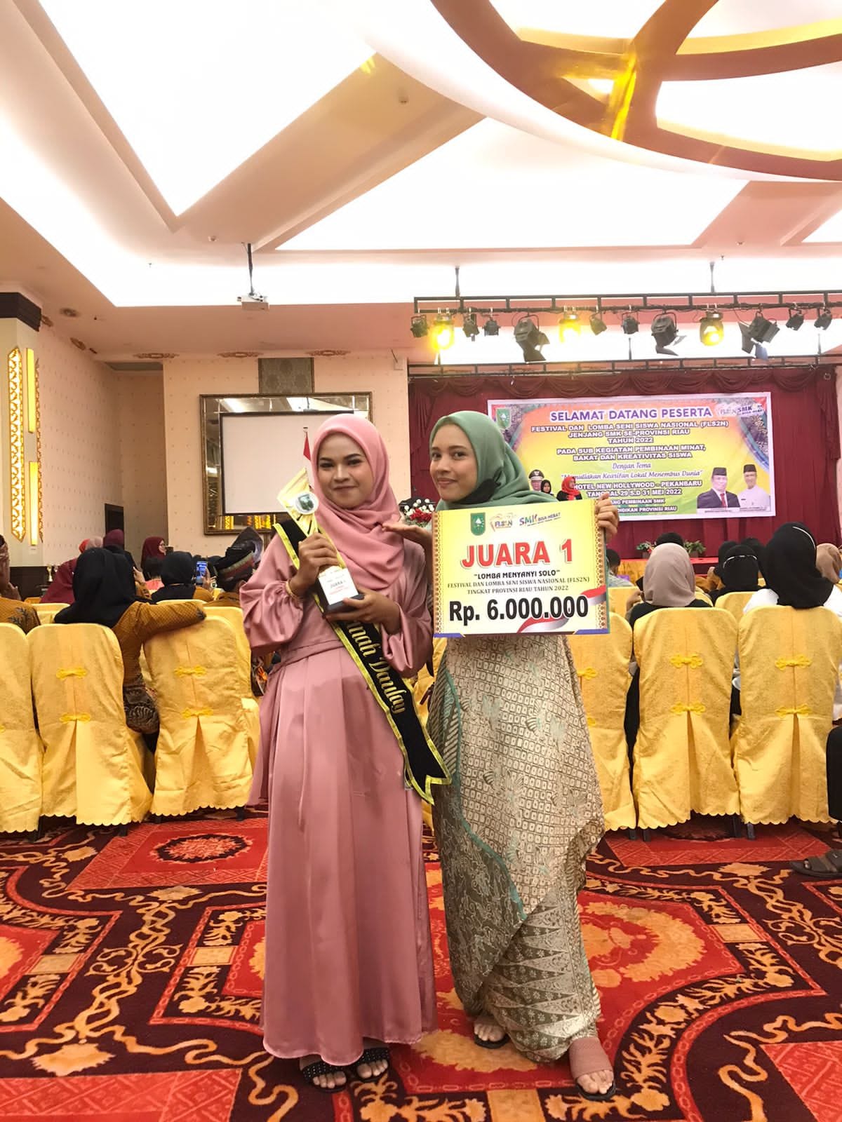 PELALAWAN | Siswi SMKN 1 Bandar Sekijang, Kabupaten Pelalawan, Provinsi Riau bernama Nurul Hasanah Daulay berhasil meraih juara menyanyi solo dalam Festival Lomba Seni Siswa Nasional (FLS2N) tingkat Provinsi Riau, dan bersiap untuk mewakili Provinsi Riau di tingkat nasional.