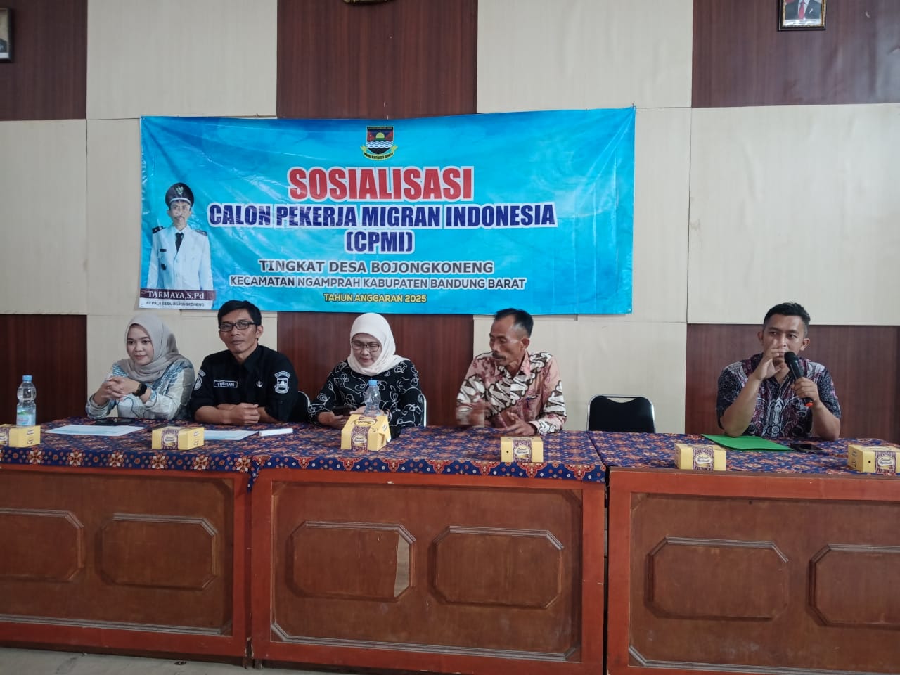 DESA BOJONGKONENG, BANDUNG BARAT – Sosialisasi Calon Pekerja Migran Indonesia (CPMI) Tingkat Desa Bojongkoneng adalah program pemerintah daerah (Dinas Tenaga Kerja/Disnaker atau BP3MI) di Tingkat Desa Bojongkoneng, Kecamatan Ngamprah, Kabupaten Bandung Barat di aula Desa Bojongkoneng,Selasa, (20/01/2025).