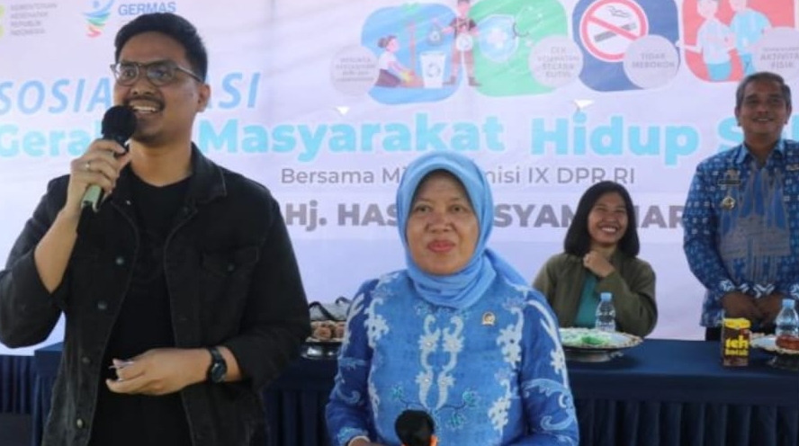 Sekitar 500 peserta Sosialisasi Germas yang diselenggarakan atas kerjasama Komisi IX DPR RI dengan mitra kerjanya Kementerian Kesehatan RI., ini dihadiri oleh Direktorat Kesehatan Usia Produktif dan Lansia dr. Setya Ningrum, SP. KO selaku Ketua tim Kerja Kesehatan